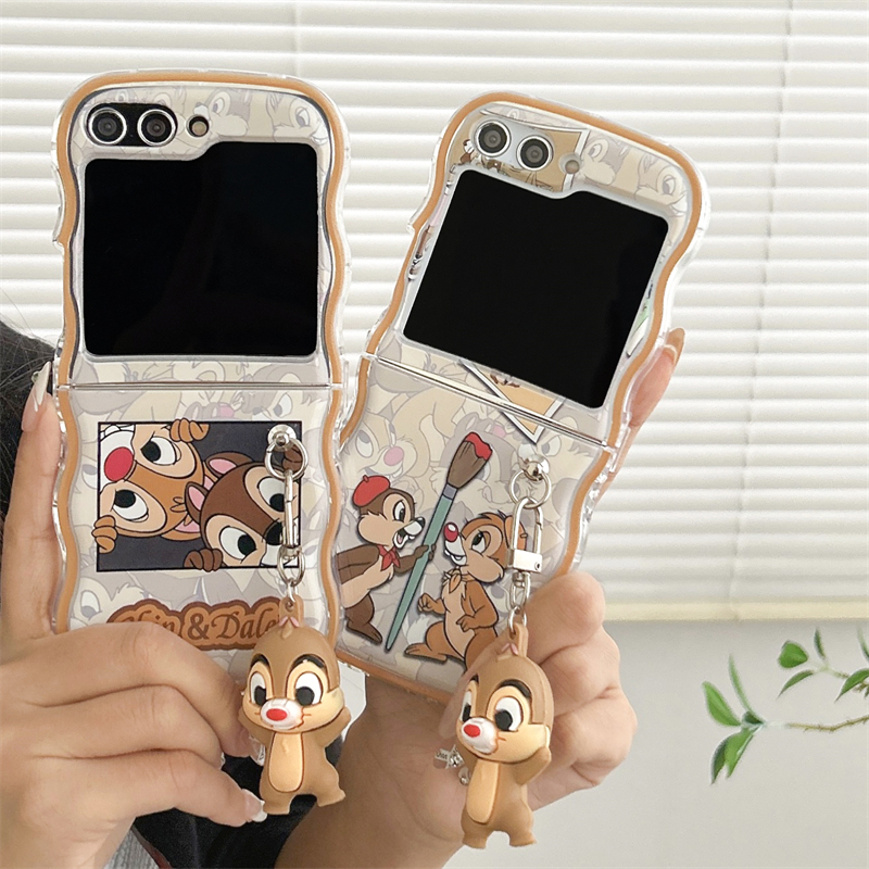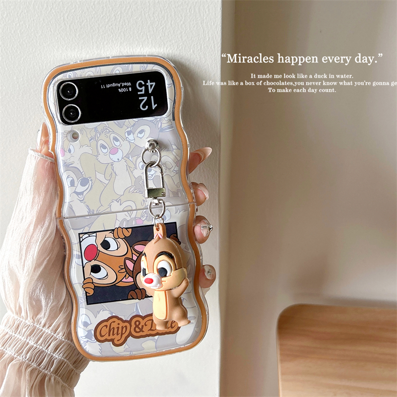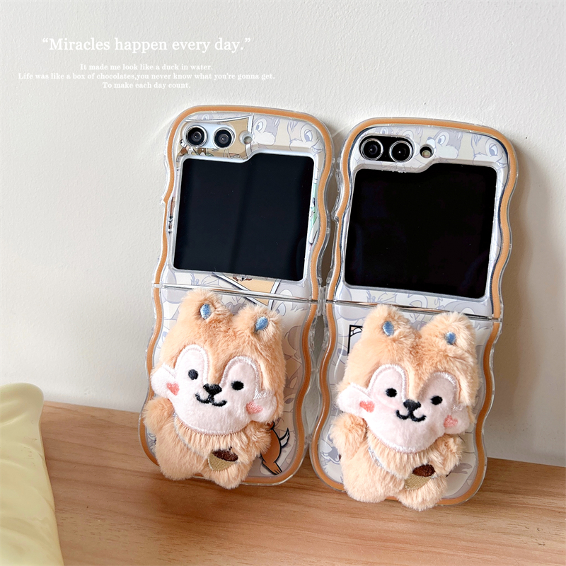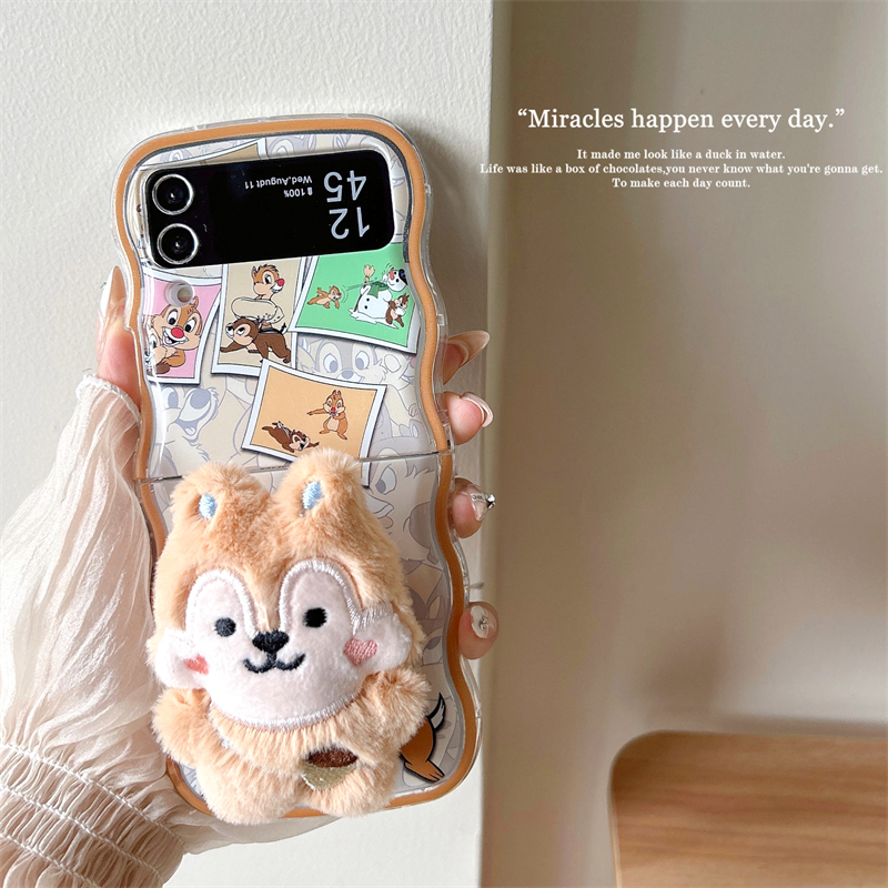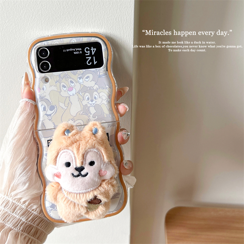 適用三星zflip5手機殼簡約INS奇奇蒂蒂松鼠花栗鼠軟硅膠保護套zflip 3殼折疊屏毛絨公仔支架吊墜flip4防摔三4