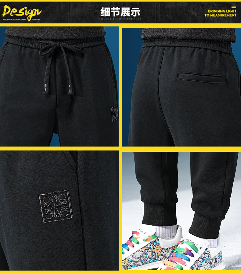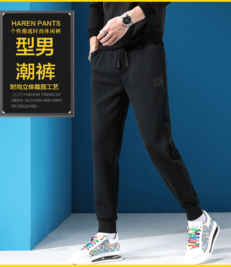 男士衛褲春秋冬季潮牌韓版新款加絨休閑褲男裝大碼寬松運動束腳長