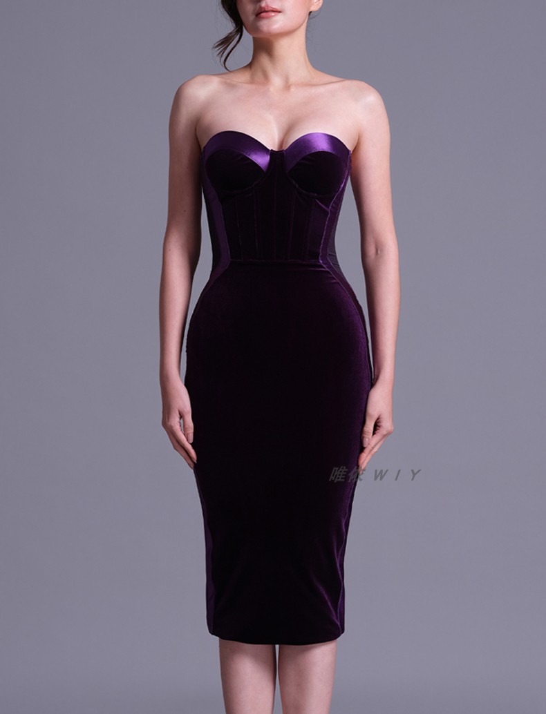 個性時尚晚禮服2023新款短款年會小禮服紫色抹胸高級質感連衣裙女