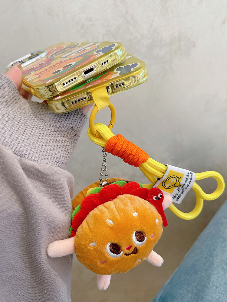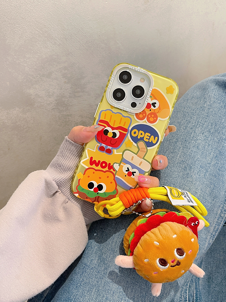 卡通線條漢堡薯條表情適用蘋果15pro手機殼iphone14新款2023女款13promax掛鏈12超火新款11高級感max防摔plus