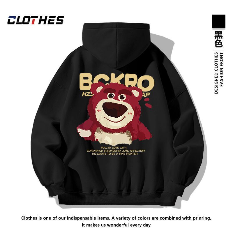 草莓熊連帽開衫衛衣女秋冬加絨酒紅色小眾oversize小個子拉鏈外套
