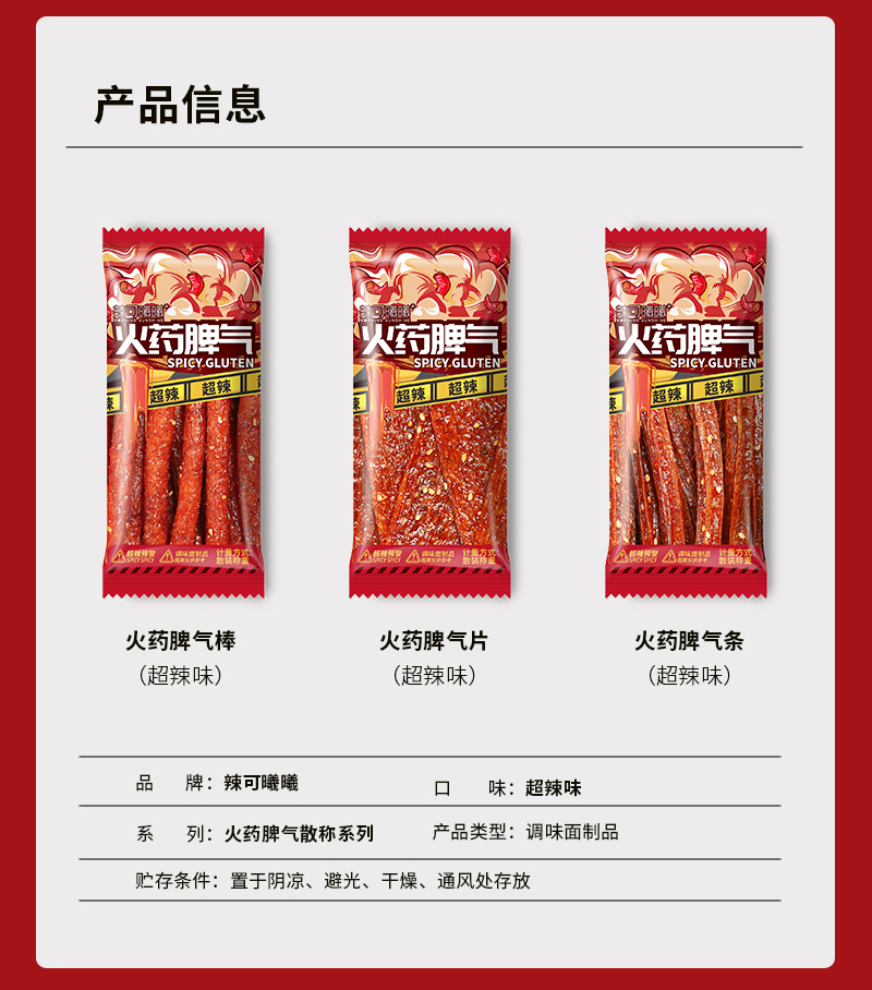 火藥脾氣條+片+棒30包組合裝辣條超辣爆辣休閑零食平江麻辣條