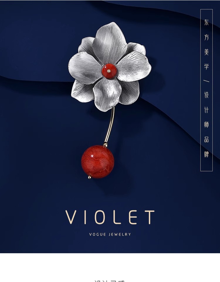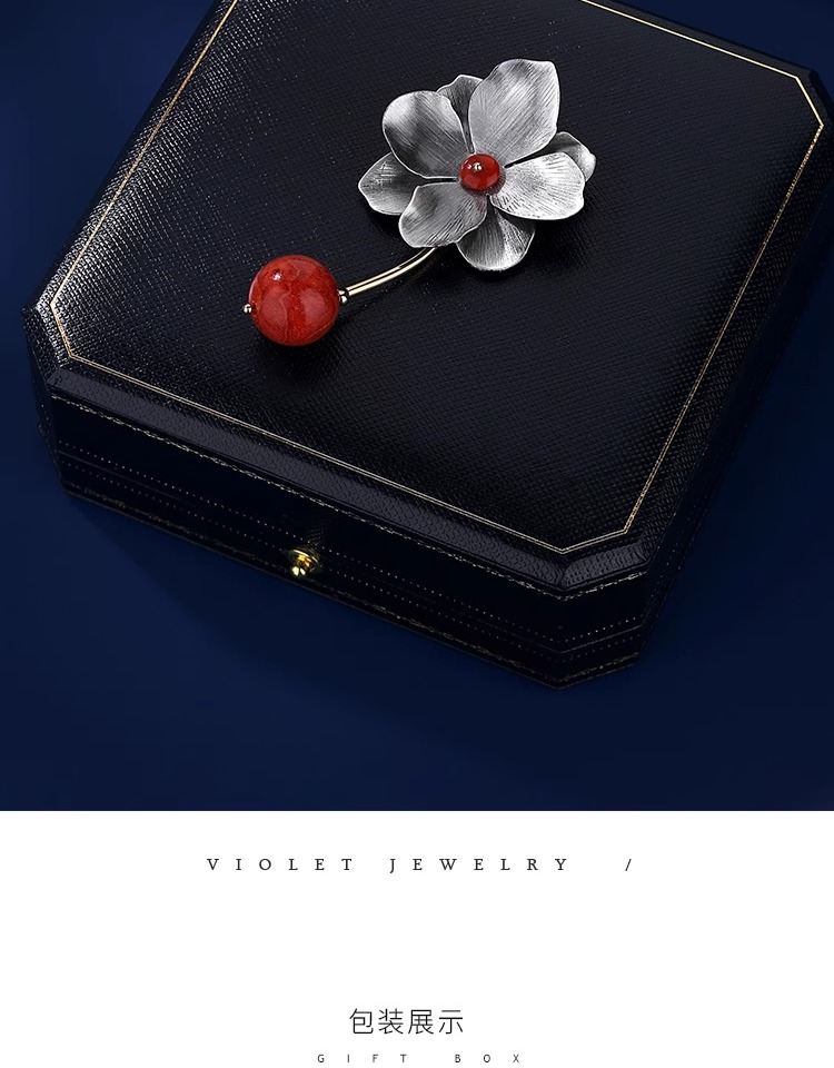 【紫羅蘭正版】珊藍花胸針手工刺繡蜜蠟花蕊胸花高檔禮服西裝別針