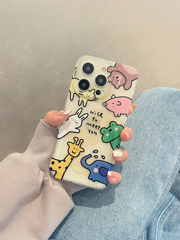 ins風可愛卡通動物園適用蘋果15promax手機殼iphone14pro皮質13高級感12小眾11保護套max新款網紅個性創意女