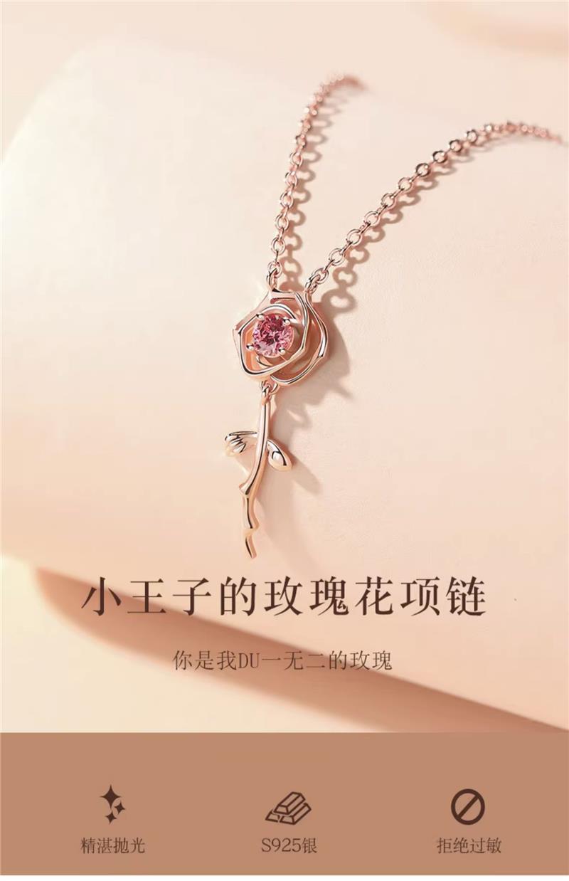 999足銀小王子玫瑰花項鏈女生2023年新款小眾輕奢吊墜送女友禮物
