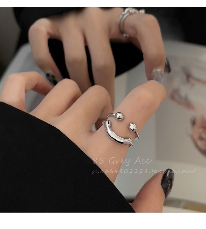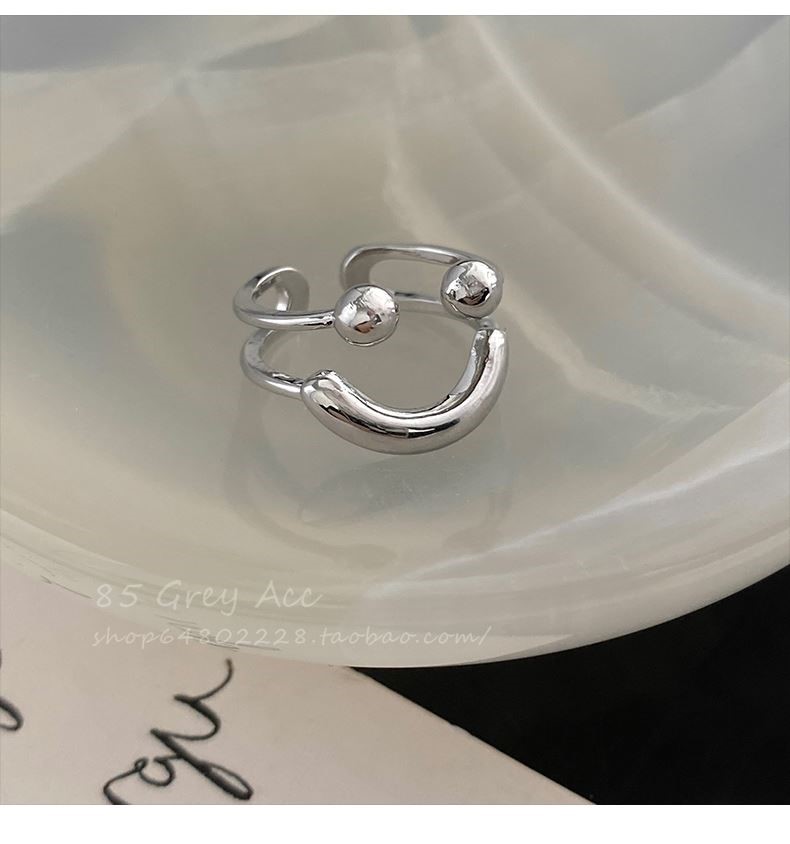 晴天笑臉簡約少女戒指開口可調節小眾設計百搭指環個性食指尾戒子