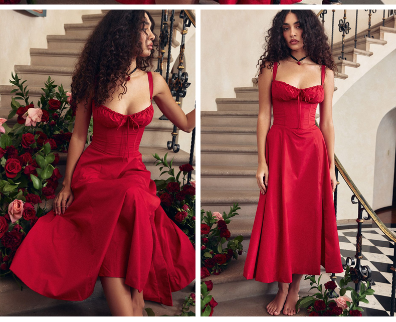 House of CB 超好看顯身材吊帶中長連衣裙23新款束腰太陽裙Carmen