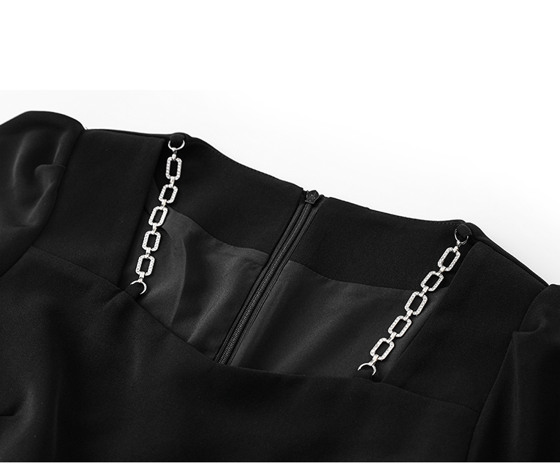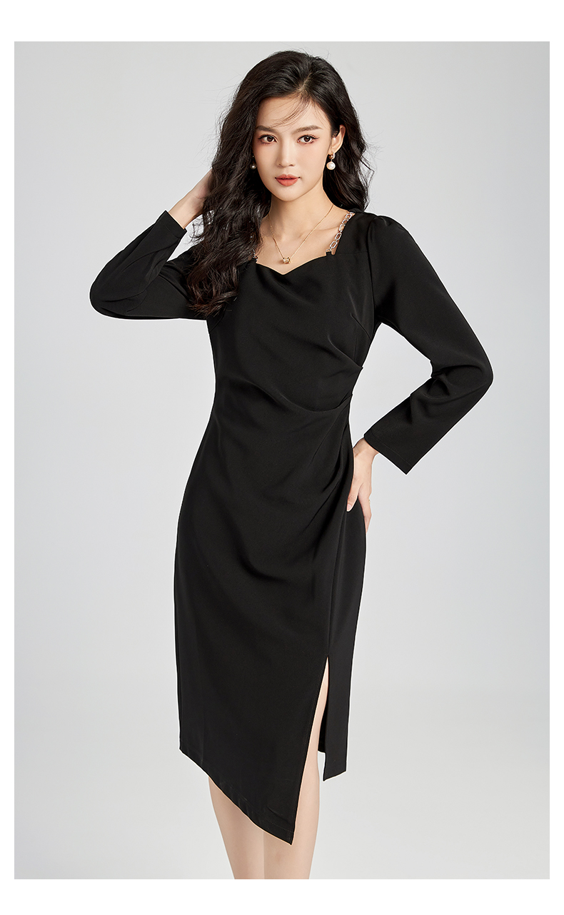 高級氣質不規則中長款職業裙子女春秋款法式方領泡泡袖長袖連衣裙