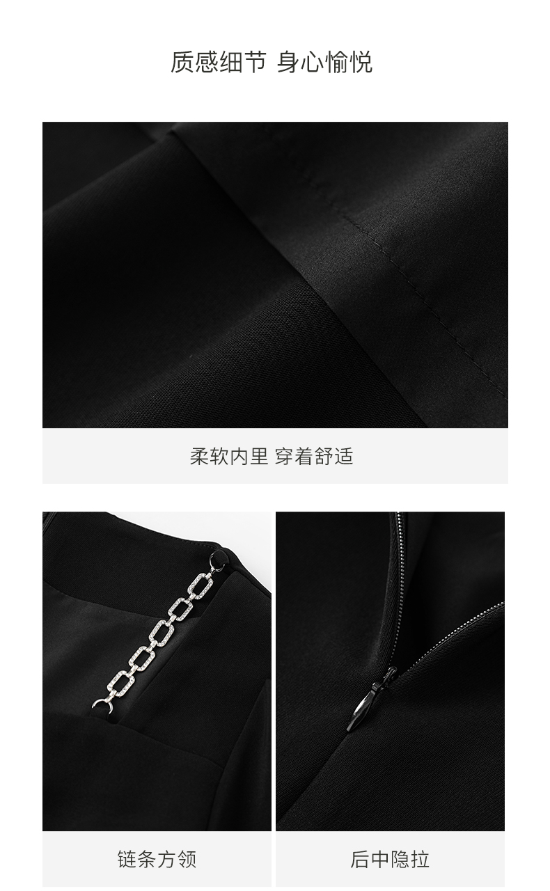 赫本風高奢收腰黑色絲絨連衣裙女春秋款顯瘦雪紡拼接洋氣法式長裙