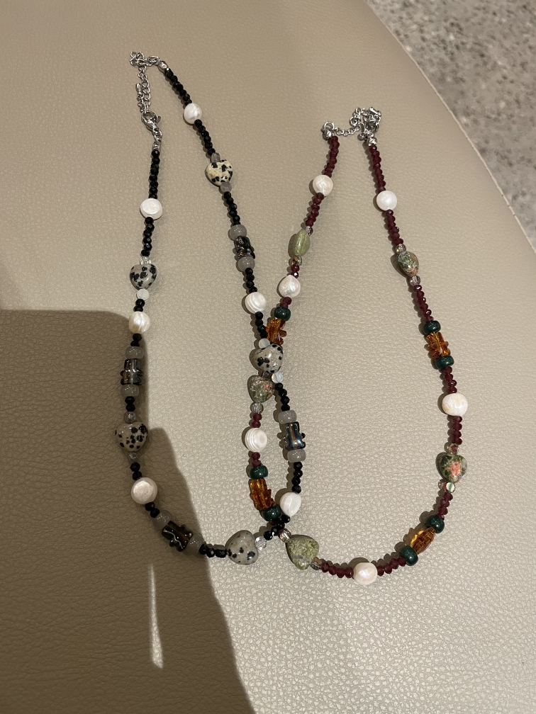 JINMUKE飾品韓國進口首飾串珠愛心黑色氣質項鏈