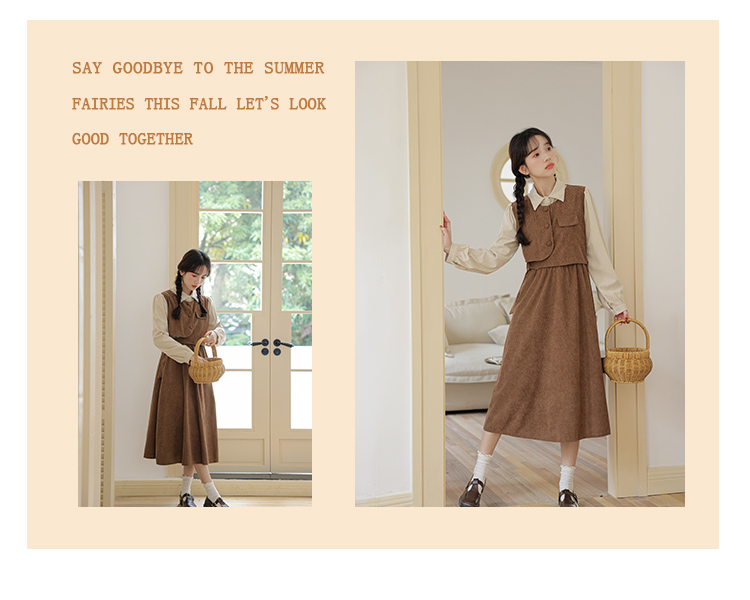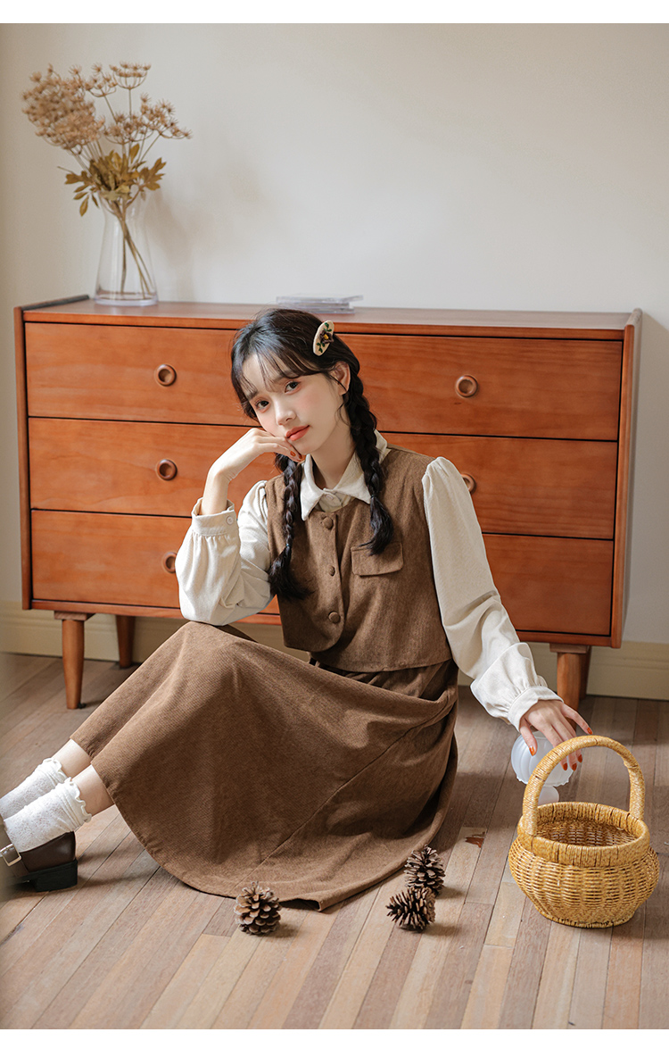 學院風復古燈芯絨連衣裙女秋冬季新款法式收腰氣質加厚打底長裙子