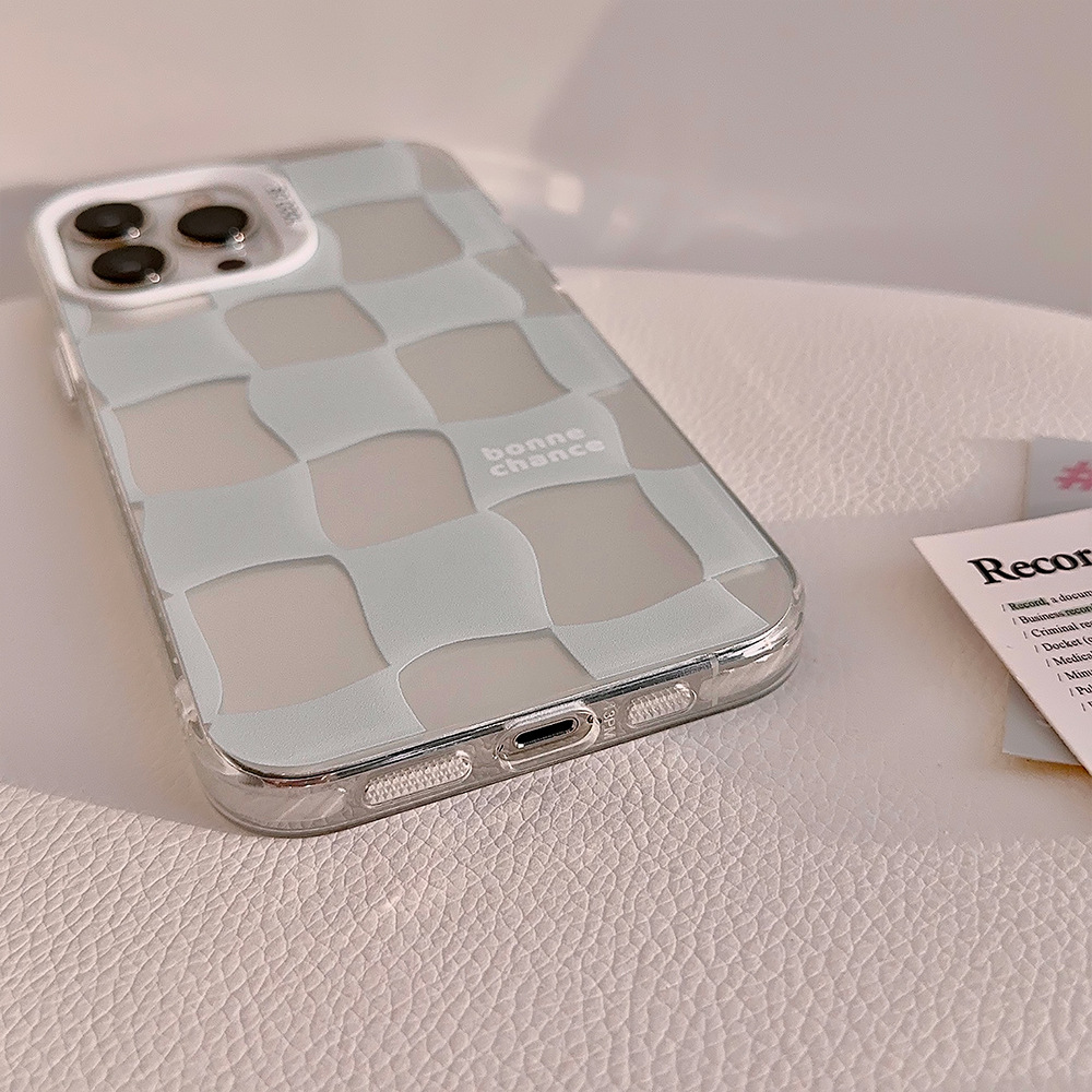 桔子貓小眾ins奶藍格子iphone15適用14Pro max手機殼12蘋果13簡約11硬14