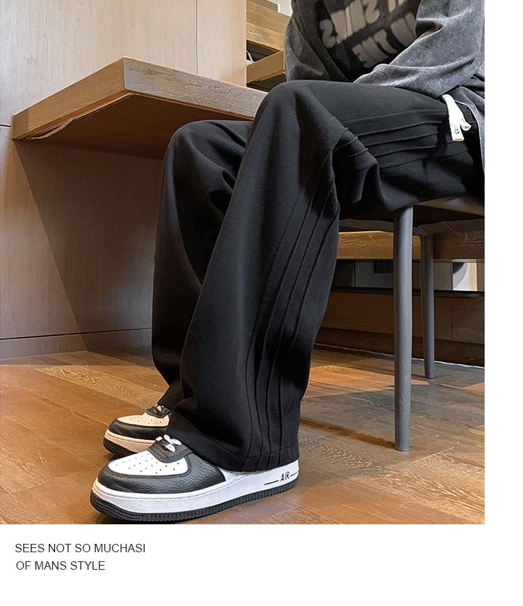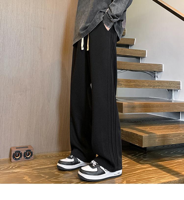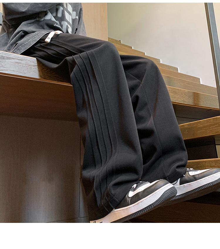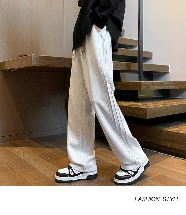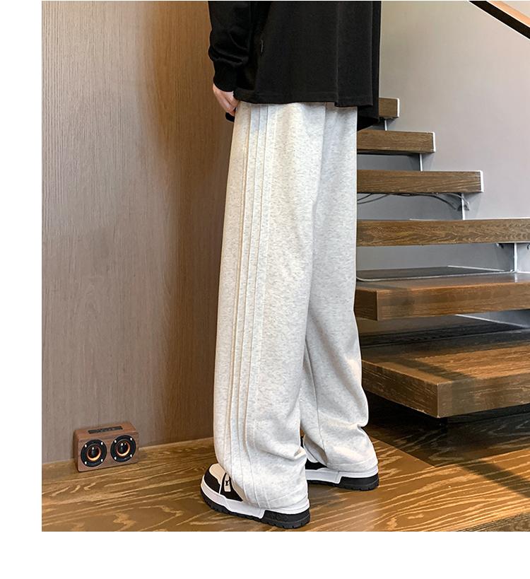 灰色褲子男秋季條紋垂感闊腿運動褲美式復古潮牌寬松直筒休閑長褲