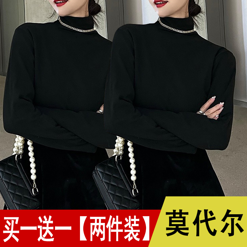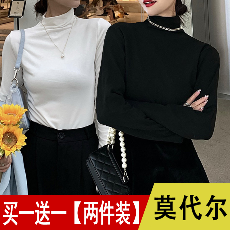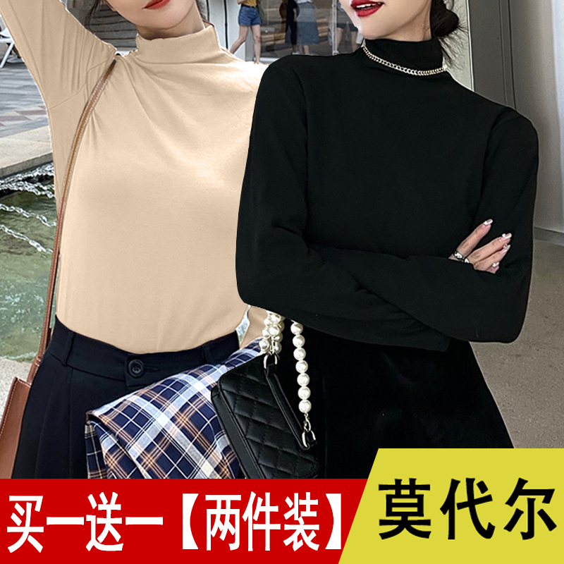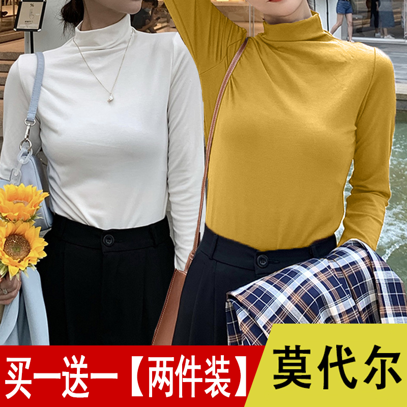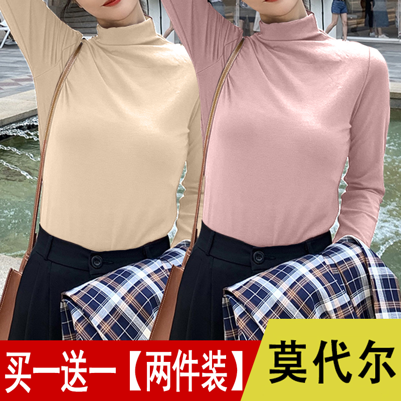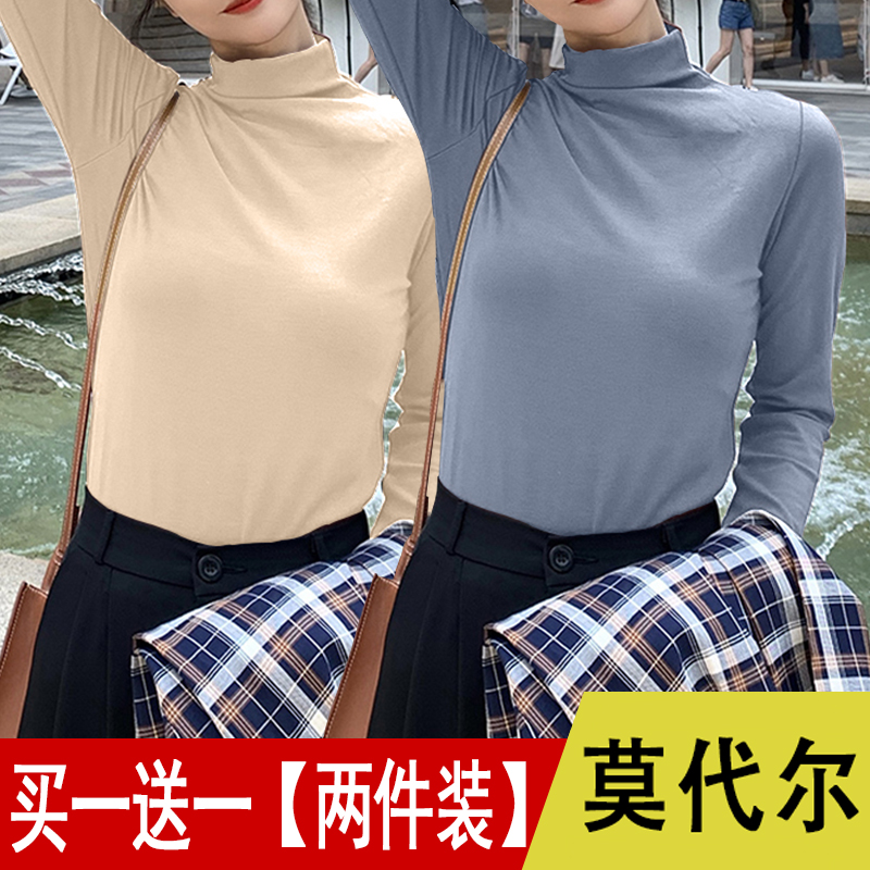 單/兩件 莫代爾半高領打底衫女秋冬季內搭顯瘦2023長袖T恤女上衣