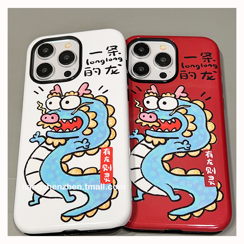 龍年款可愛卡通一條龍適用蘋果15promax手機殼iphone14女款15pro新款13創意趣味爆12菲林硬殼pro防摔11二合一