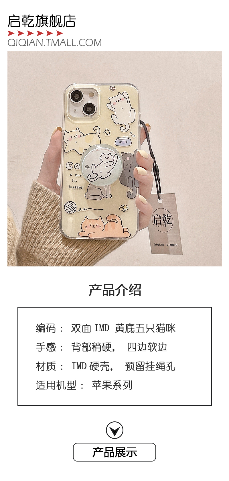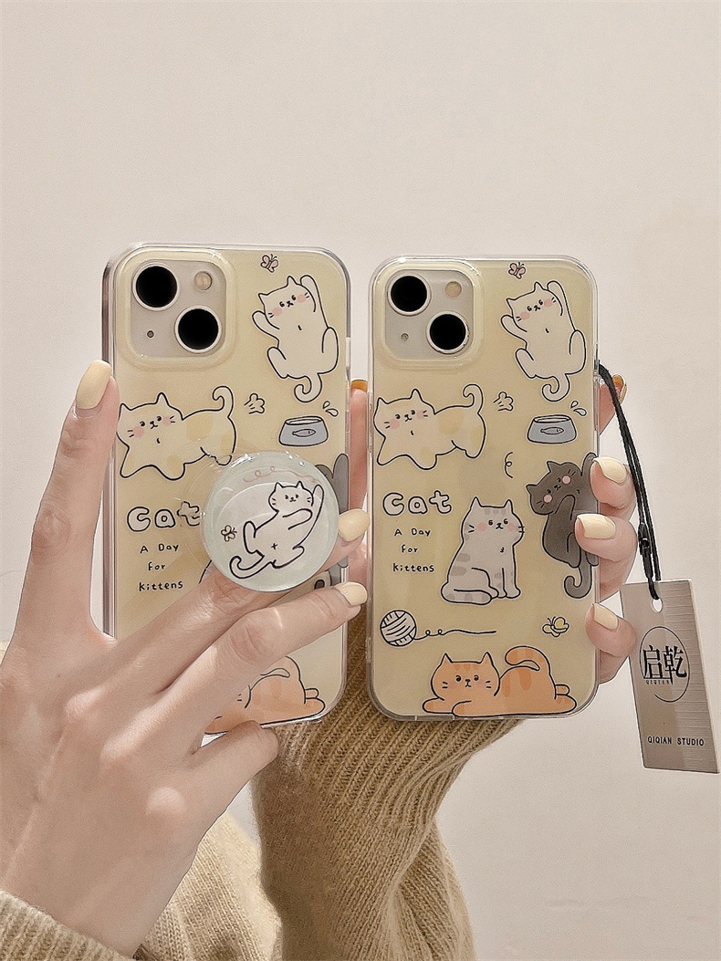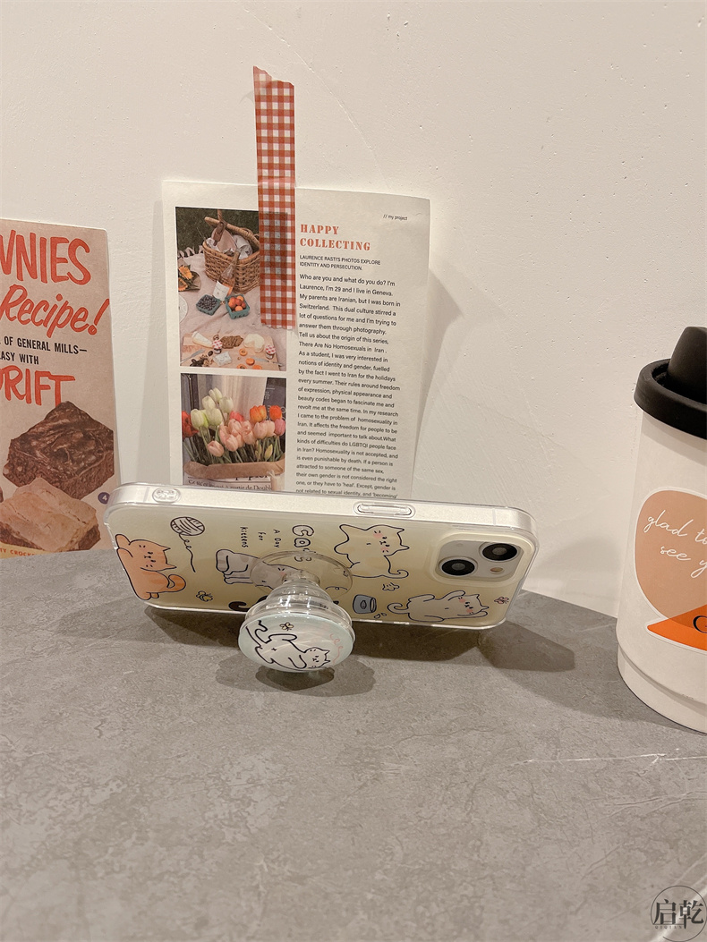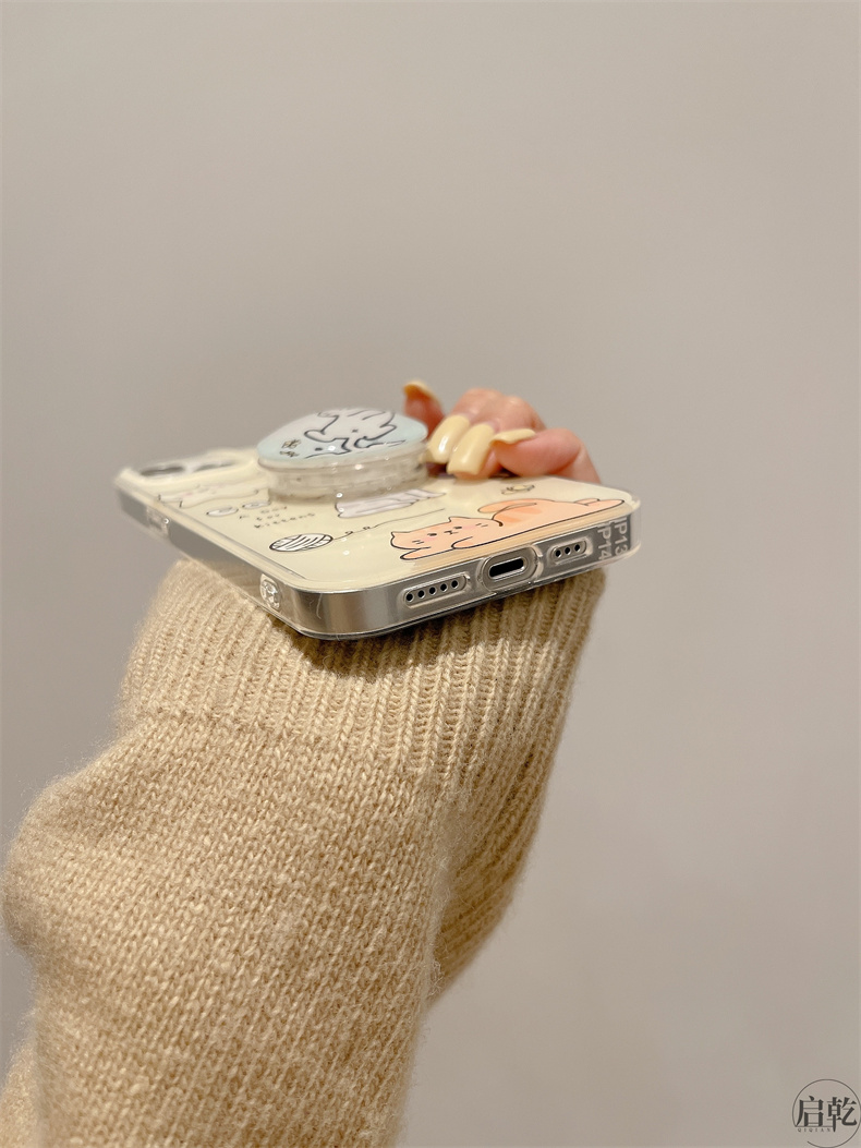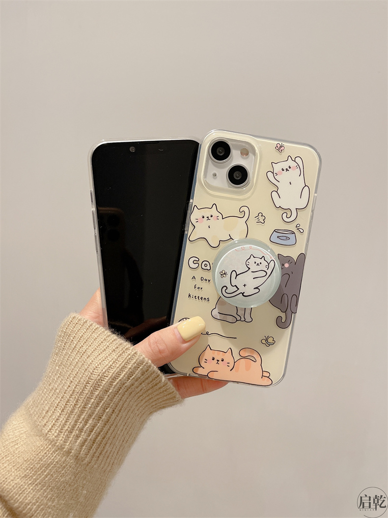 啟乾 趣味小眾貓咪支架背貼iphone15手機殼適用蘋果14/13promax硬殼12/11可愛卡通女新款防摔