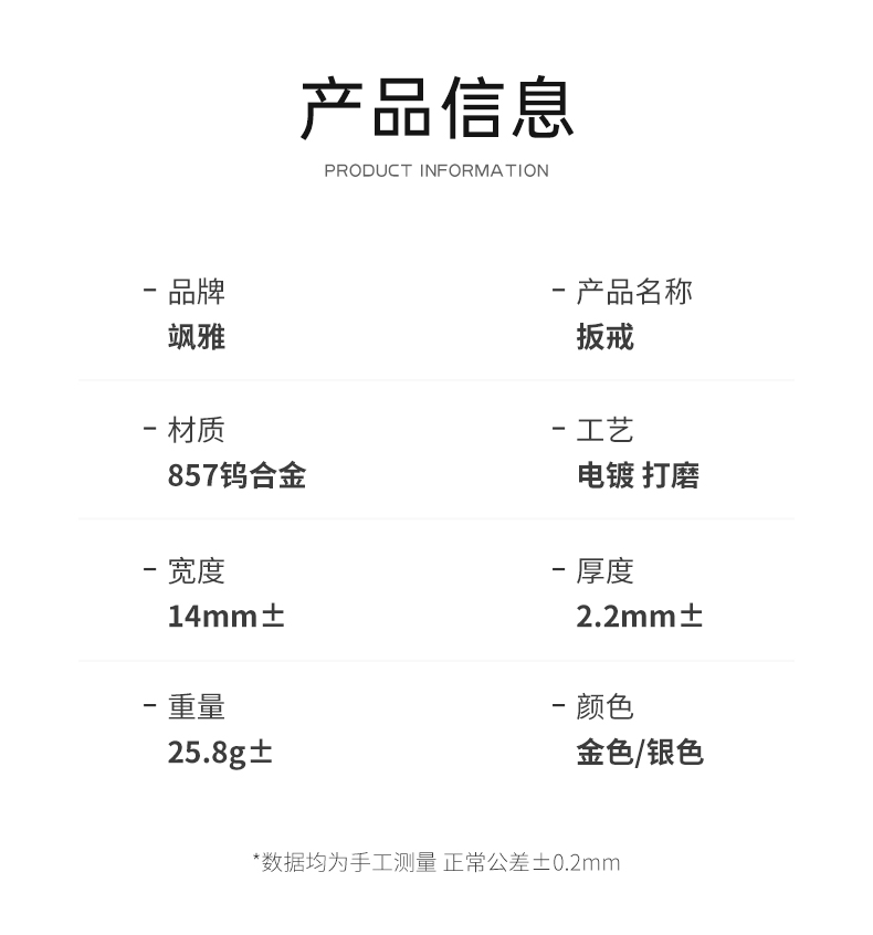 99¥ CZ0001 VllTdCoRHy0¥ https://m.tb.cn/h.53b5dvH 寬版鎢金戒指扳指男士鍍黃金指環寬面光板鎢鋼光面板戒食指個性潮 --------------------- 寬版鎢金戒指扳指男士鍍黃金指環寬面光板鎢鋼光面板戒食指個性潮 --------------------- 高硬度鎢金質地,圓內弧設計,佩戴舒適 --------------------- 【原售價】228元 【優惠券】20元 【券后價】208元。